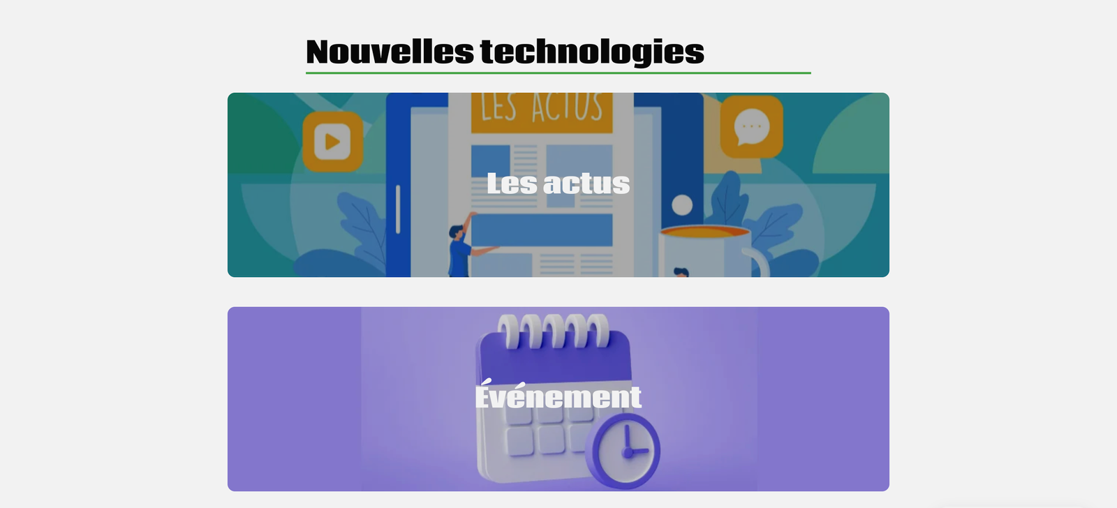 L’objectif était de proposer une interface claire et structurée pour informer les utilisateurs via différentes thématiques.
